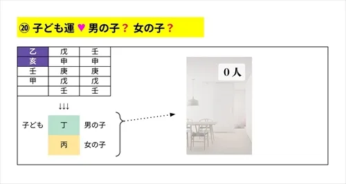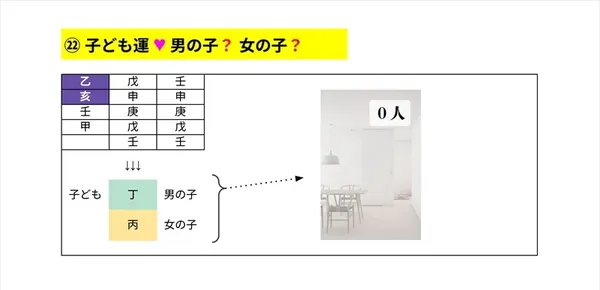 あなたが授かる、お子さんの数、男の子○人、女の子○人が存在しています。